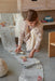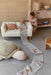 Unisciti alla tartaruga appena nata nel suo viaggio attraverso gli oceani! La Tartaruga Ride&Roll è composta da una morbida tartaruga di peluche realizzata in tela di cotone, con zampe verde oliva e conchiglia ricamata. La tartaruga viene consegnata arrotolata in un rotolo di tela lungo 4 metri di colore blu salvia, raffigurante il magico mondo dei fondali marini con i suoi coralli multicolori e i riflessi dell'acqua stampati sulla parte superiore. Dotato di cordoncini intrecciati ai bordi, può essere facilmente arrotolato e legato insieme alla tartaruga, trasformandosi in una pratica valigetta.